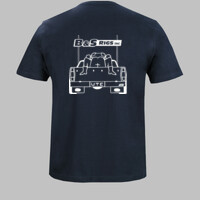 A cool hand drawing of a front of a ute with a five posted bull bar and the back of the ute with peaple rootin in it, printed in white.